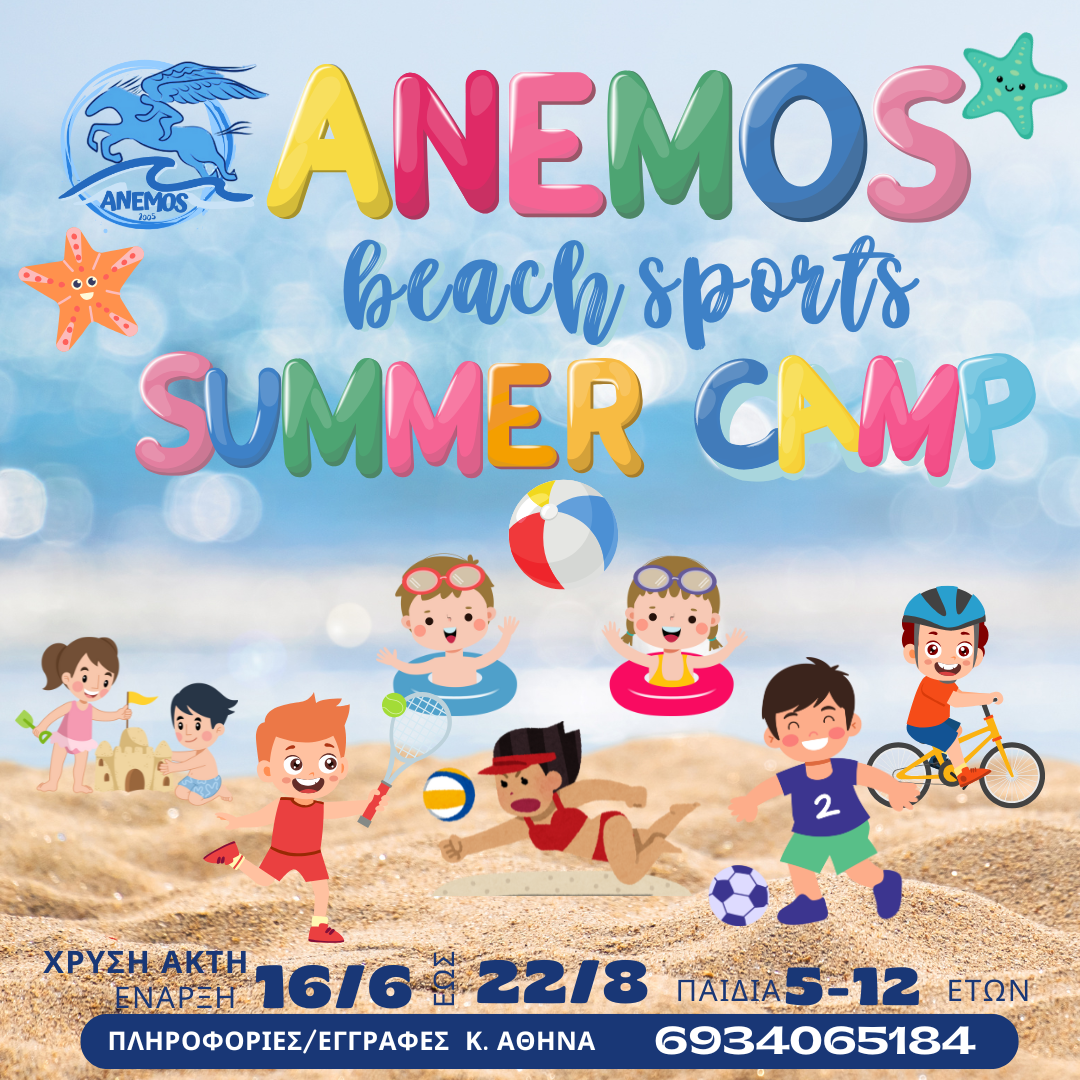 Ο Ανεμος, για 7η συνεχή χρονιά, θα διοργανώσει ολοήμερο πρόγραμμα αθλημάτων παραλίας, στο οποίο μπορούν να συμμετέχουν παιδιά ηλικίας 5-12 ετών.
