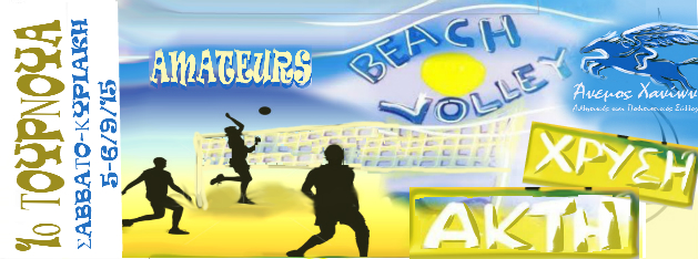 Ο Α.Π.Σ. » Άνεμος» θα διοργανώσει Τουρνουά Beach Volley, το Σαββατοκύριακο 5-6/9/15 το οποίο θα πραγματοποιηθεί απο το απόγευμα Σαββάτου και την Κυριακή η ώρα θα οριστεί ανάλογα με τον αριθμό συμμετοχών των ομάδων. Θα ακολουθήσει Beach party και barbeque.