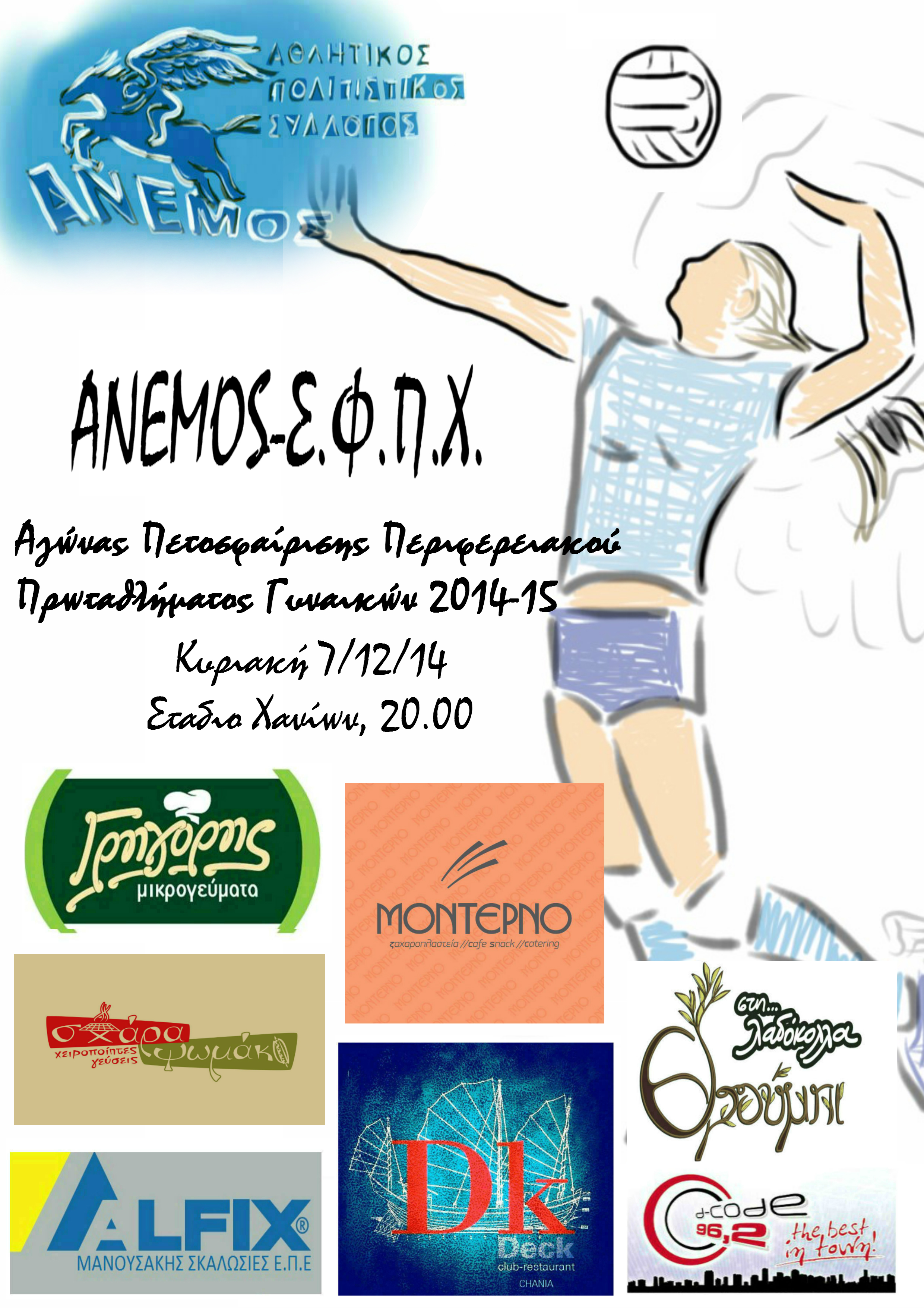 Την Κυριακή 23 Νοέμβρη, ξεκίνησε το Παγκρήτιο πρωτάθλημα βόλεϊ γυναικών 2014-15. Να ευχηθούμε καλή σεζόν και να ευχαριστήσουμε θερμά τους χορηγούς μας: